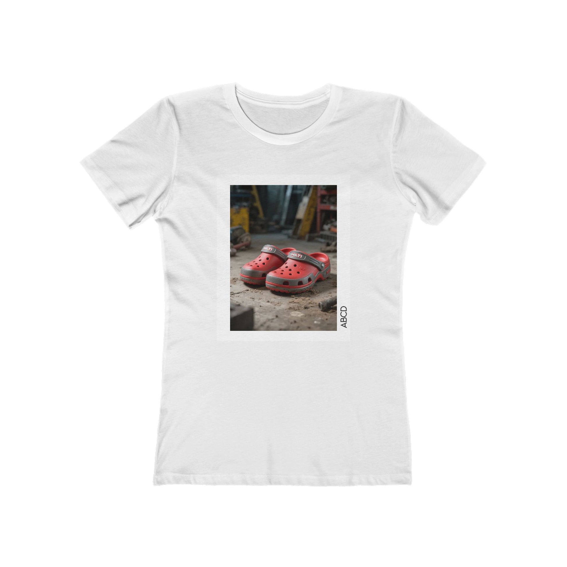 This photorealistic T-Shirt features a pair of Crocs designed in Hilti style, with bold red and gray industrial accents, Hilti logo embossed on the strap, and a rugged steel-textured surface. The cinematic lighting and ultra-detailed 8K realism create a unique and edgy vibe, perfect for those who appreciate industrial aesthetics. Ideal for workshop enthusiasts and fashion-forward individuals. Relevant for casual wear, workshop gatherings, and fashion statement occasions.